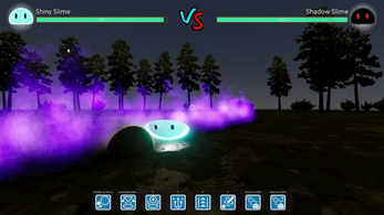 A shiny slime specialised in light elemental attacks is fighting a shadow slime specialised in dark elemental attacks.